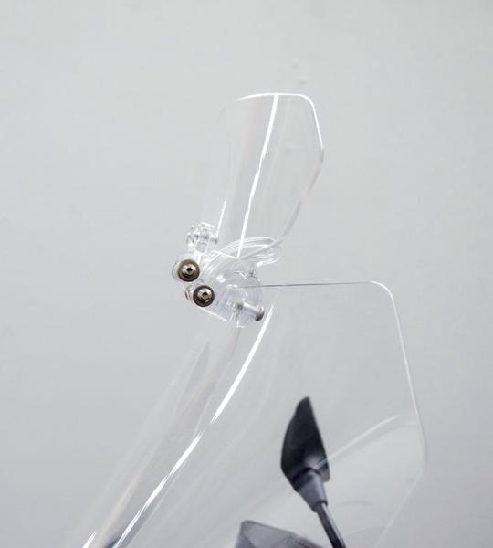 Per un maggior confort nella guida e un minor impatto visivo abbiamo realizzato questo prodotto con un meccanismo trasparente in materiale indistruttibile, dando la possibilità di scegliere un fissaggio con viti per chi non ha particolari esigenze di cambiare l’inclinazione dello spoiler durante I sui viaggi (COD. SP11-SP21) e una versione con levette (COD.SP22) che permette una rapida movimentazione dello spoiler senza l’utilizzo di attrezzi.