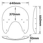 Realizzato in PMMA di primissima qualità che mantiene inalterata la sua lucentezza nel tempo. E’ possibile scegliere tra due misure : 19” o 16” (misura dal centro del faro alla sommità del parabrezza) e nei colori trasparente o fumè chiaro. Il montaggio è semplice e rapido: sarà sufficiente rimuovere le staffe cromate e l’attacco dal vecchio parabrezza originale e montarle sullo schermo Isotta utilizzando sempre le viti originali.
